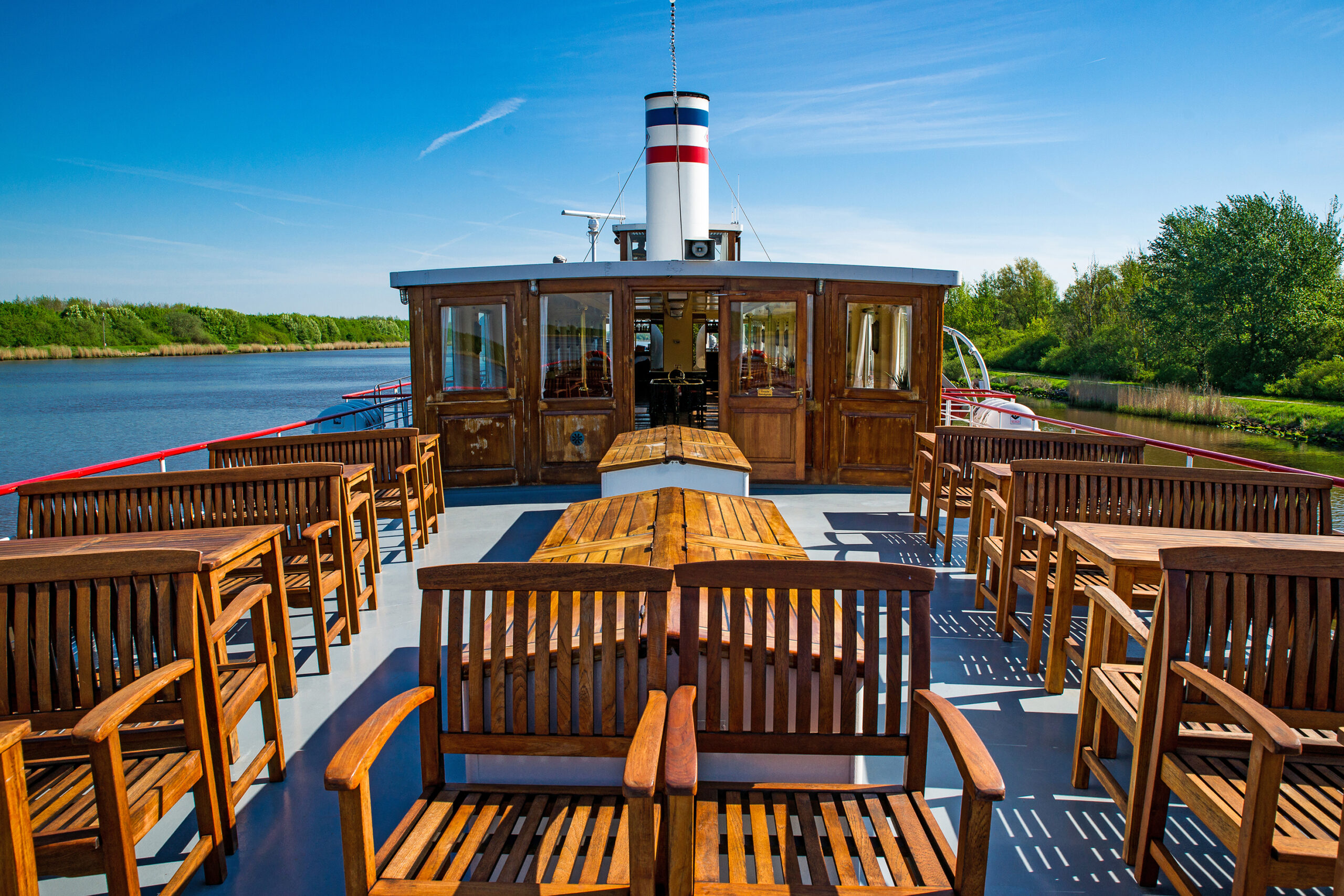 Nach Ankunft am Kieler Hafen verbringen Sie 6 Stunden auf dem kleinen historischen Raddampfer FREYA